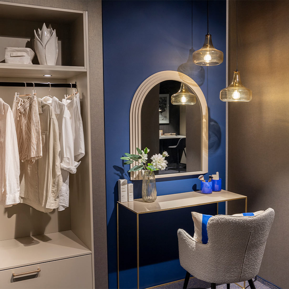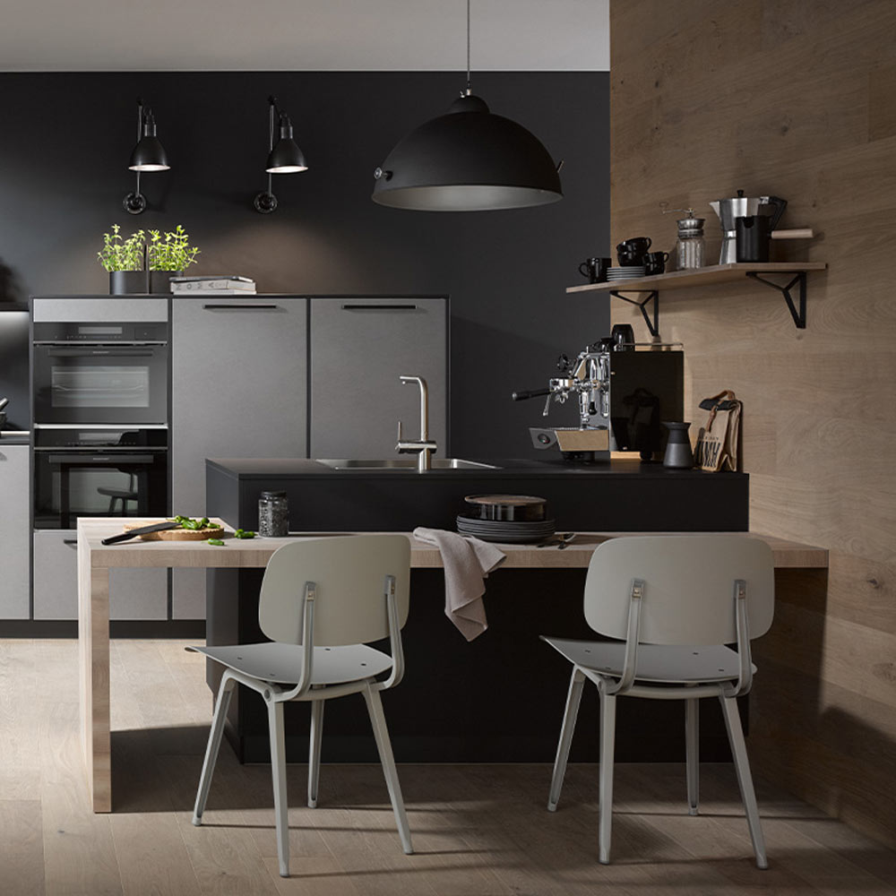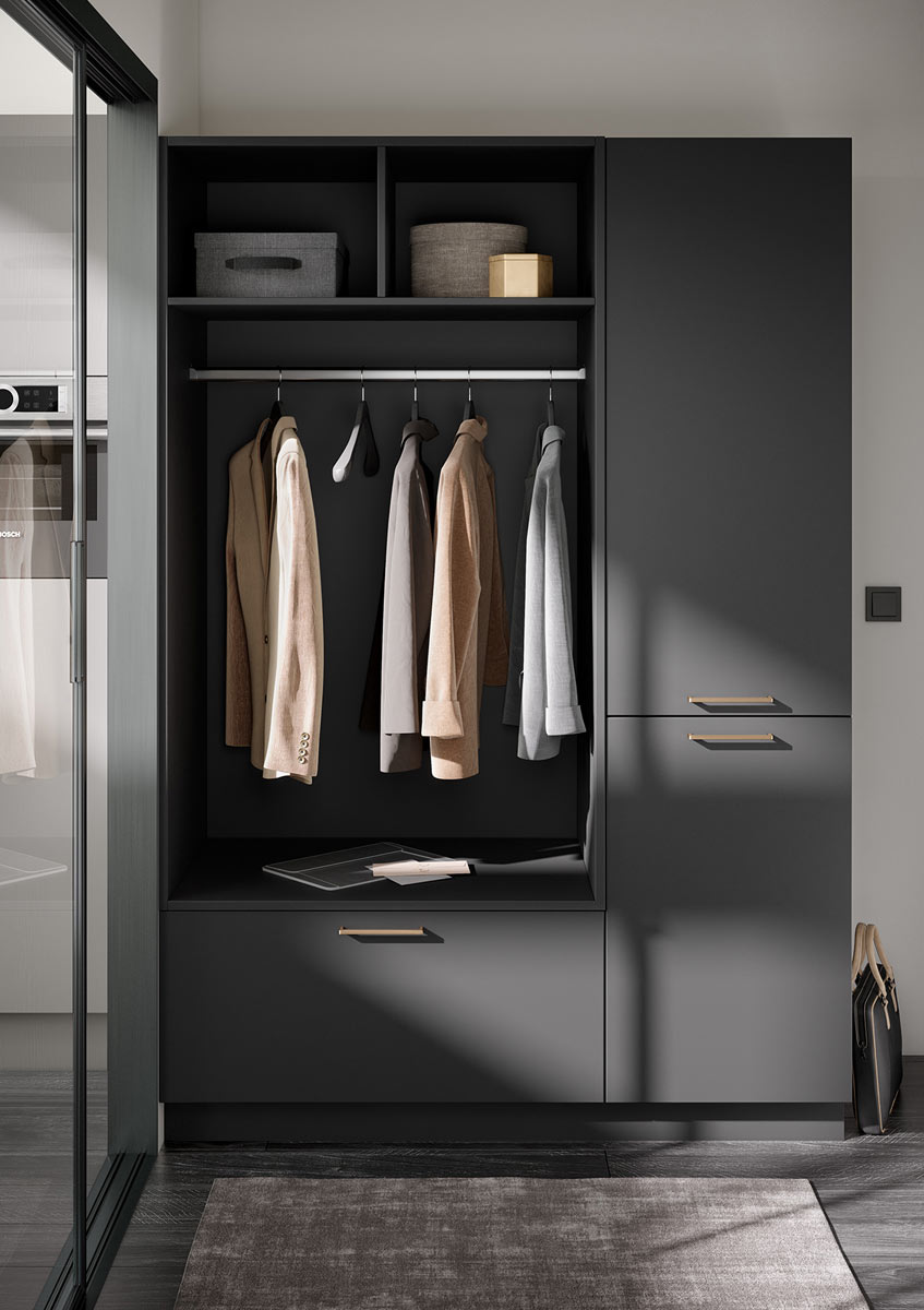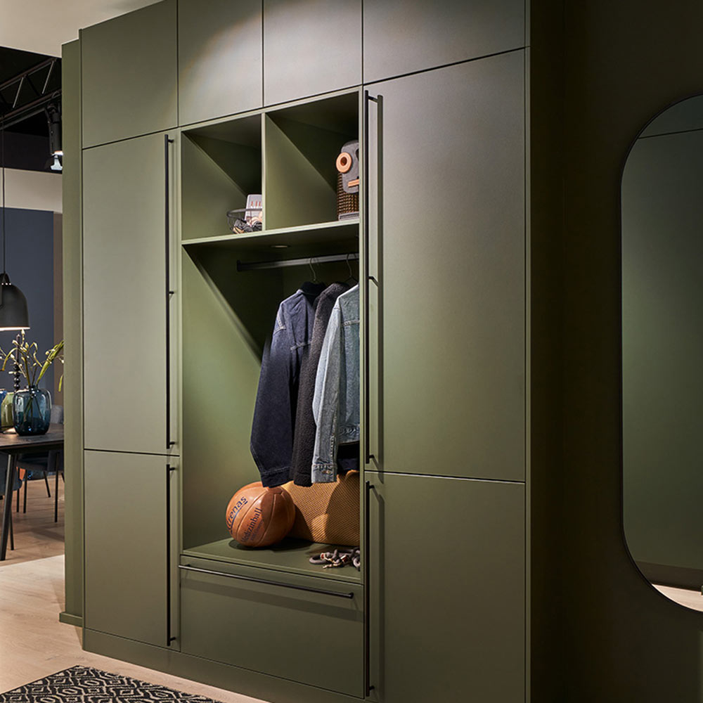 Nowoczesna kuchnia staje się elastyczną przestrzenią mieszkalną! Dzięki naszym przemyślanym meblom kuchennym można płynnie zintegrować eleganckie domowe biuro. Szczególnie w otwartych kuchniach z narożem sprawdzą się minimalistyczne rozwiązania. Szafki ze zintegrowanym blatem tworzą funkcjonalną przestrzeń roboczą, a wbudowane oświetlenie zastępuje klasyczną lampę stojącą i tworzy przyjemną atmosferę. Czy od czasu do czasu odkładasz swój laptop na bok? Wtedy twoje stanowisko pracy w mgnieniu oka zmieni się w zapraszający swoją otwartością coffee bar! Dzięki elementom organizacyjnym wewnątrz szuflad i szafek Twoje materiały biurowe są zawsze w zasięgu ręki i schludnie schowane. Tak aranżacja kuchni staje się czystą przyjemnością, a praca w domu komfortowym doświadczeniem!Wizytówka na wejściu