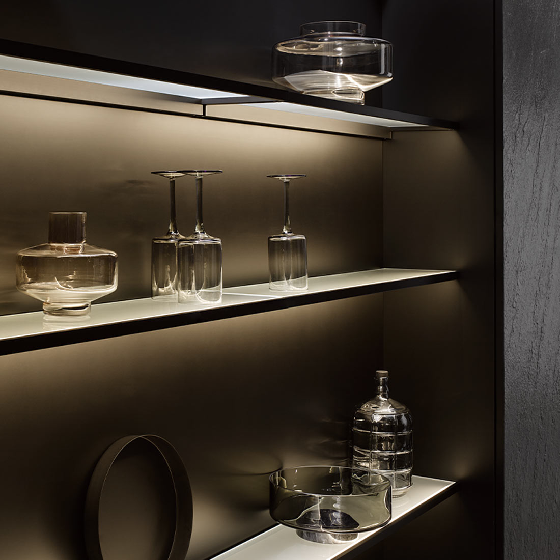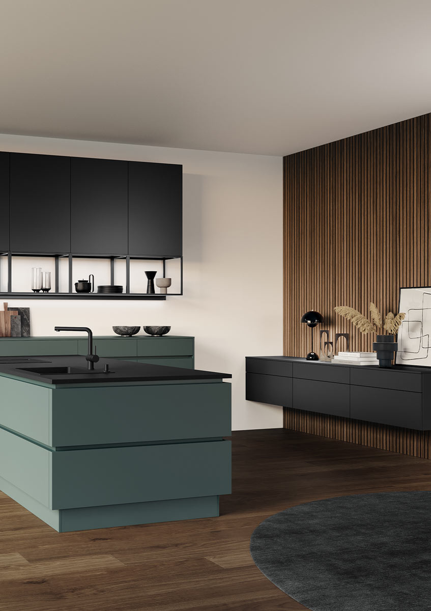 Połączenie awangardowego wzornictwa, przyjaznych dla środowiska materiałów i najnowszych technologii tworzy imponujące kuchnie, które nie pozostawiają nic do życzenia pod względem jakości i elastyczności. Pływające kredensy, podświetlane półki z regulacją temperatury kolorów i relingi z różnymi dodatkowymi funkcjami to uzupełniające się elementy wystroju, które można doskonale zintegrować z różnymi koncepcjami kuchni, od kuchni w stylu wiejskim po otwarte kuchnie na poddaszu.
